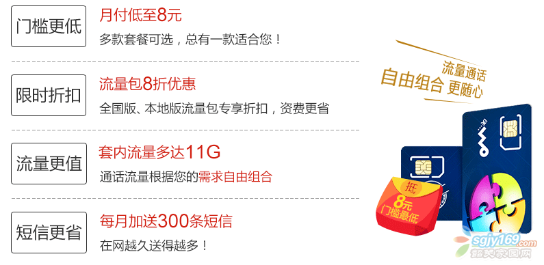 月最低8元,包含150M流量。打電話0.2 接電話免費 新買實名,購買需過戶。可以刀